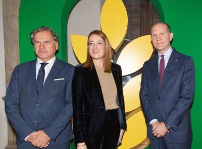 04/11/2025 Incontro a Palazzo Della Valle tra la Presidente del Parlamento UE, Metsola, e il Presidente di Confagricoltura, Giansanti