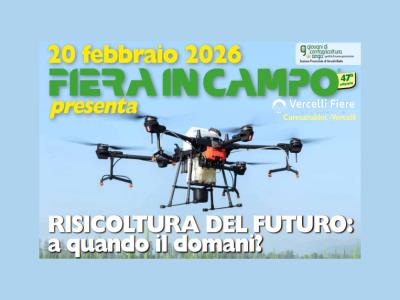 «Risicoltura del futuro: a quando il domani?» è il titolo del convegno che venerdì 20 febbraio alle 10 in Sala anticiperà l'inaugurazione della Fiera in Campo, la manifestazione agricola, in ambito risicolo, che da oltre 40 anni anima la campagna vercellese. Il tema è l'innovazione: sulla locandina un drone in volo su un terreno agricolo, l'ultima frontiera della tecnologia applicata all'agricoltura, ancora frenato in Italia dalla burocrazia.